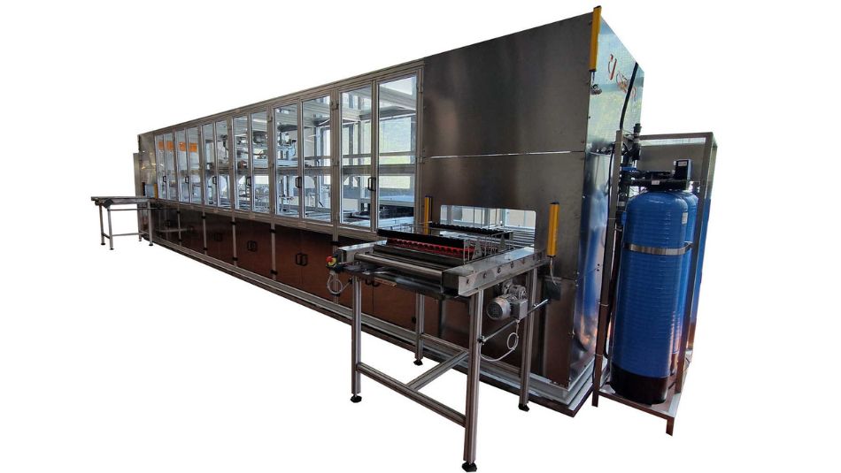 Impianti di lavaggio a movimento lineare dei materiali attraverso le diverse fasi del processo.