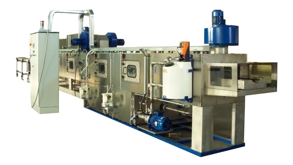 Impianti di lavaggio a movimento lineare dei materiali attraverso le diverse fasi del processo.