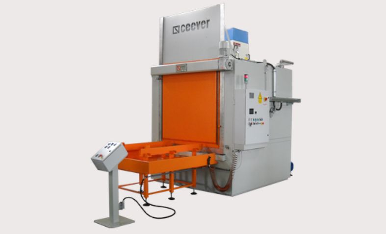 La chiusura frontale della camera è affidata a una porta motorizzata o pneumatica, che garantisce sicurezza e tenuta. Per migliorare l’efficienza del ciclo produttivo, è possibile integrare una piattaforma per il carico e scarico dei componenti direttamente davanti alla porta.